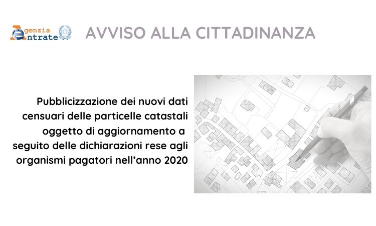 Pubblicizzazione dei nuovi dati censuari delle particelle catastali oggetto di aggiornamento a seguito delle dichiarazioni rese agli organismi pagatori nell’anno 2020