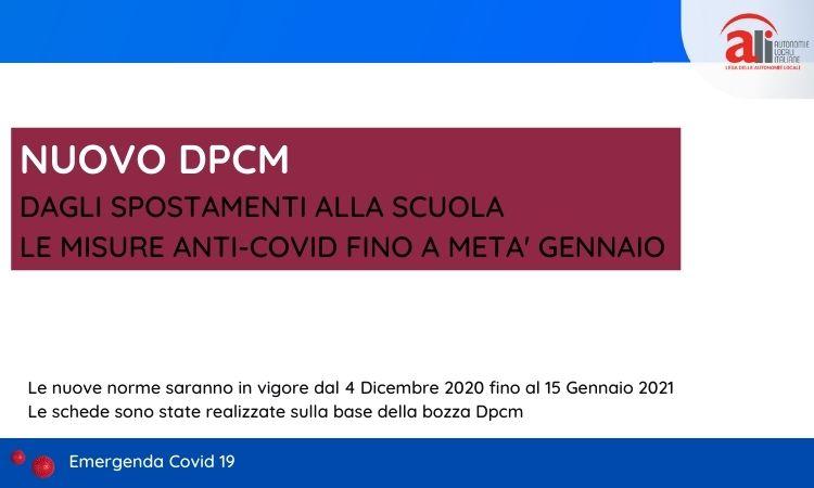 Share button Condividi Nuovo DpcmTassonomia argomenti: ComunicazioneData Articolo: Mercoledì, 9 Dicembre, 2020 - 09:35CorpoNuovo Dpcm - Dagli spostamenti alla scuola le misure anticovid fino a metà gennaio Galleria Allegati riassunto_schede.pdf (958.89 KB) allegato_1.pdf (6.72 MB) dpcm_20201203.pdf (2.22 MB) dl_2.12.2020_n._158.pdf (2.95 MB)