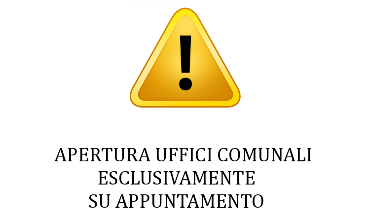 Gli uffici comunali sono aperti, ma sarà consentito l’accesso al pubblico, SOLO ED ESCLUSIVAMENTE SU APPUNTAMENTO, al fine di evitare code ed assembramenti, che DOVRÀ ESSERE PRENOTATO TELEFONICAMENTE O TRAMITE EMAIL.