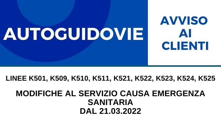 Autoguidovie - MODIFICHE AL SERVIZIO CAUSA EMERGENZA SANITARIA dal 24.03 - LINEE K501, K509, K510, K511, K521, K522, K523, K524, K525