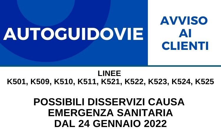 POSSIBILI DISSERVIZI CAUSA EMERGENZA SANITARIA: LINEE K501, K509, K510, K511, K521, K522, K523, K524, K525