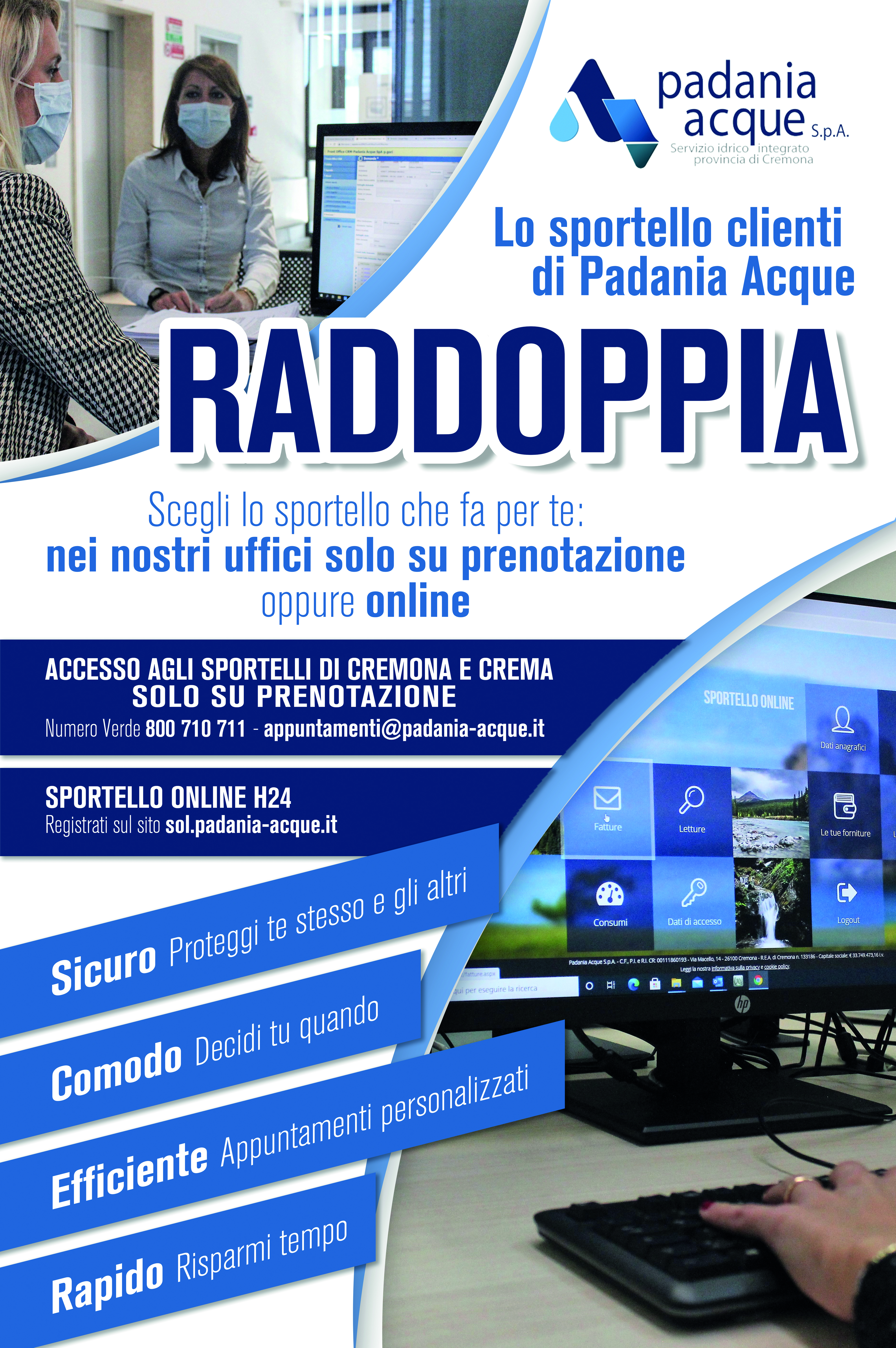 Lo sportello di Padania Acque raddoppia - Scegli lo sportello che fa per te: