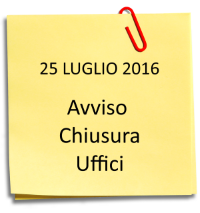 GLI UFFICI COMUNALI sono chiusi lunedì 25 luglio 2016 per il Santo Patrono;
