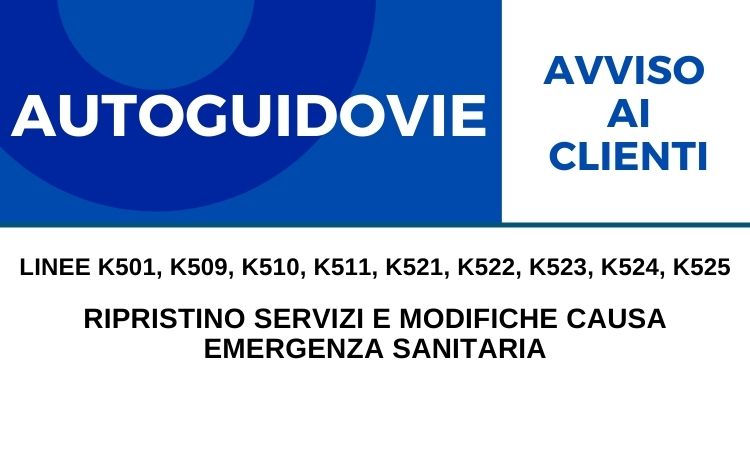RIPRISTINO SERVIZI E MODIFICHE CAUSA EMERGENZA SANITARIA LINEE K501, K509, K510, K511, K521, K522, K523, K524, K525