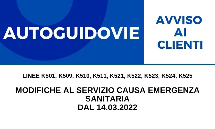 MODIFICHE AL SERVIZIO CAUSA EMERGENZA SANITARIA - LINEE K501, K509, K510, K511, K521, K522, K523, K524, K525
