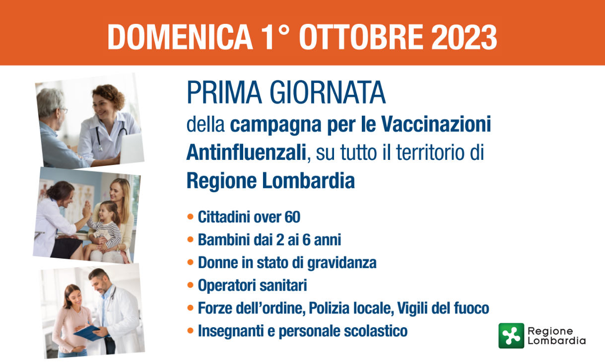 PER INFORMAZIONI E PRENOTAZIONI: vaccinazioneantinfluenzale.regione.lombardia.it a partire dal 28 settembre 2023