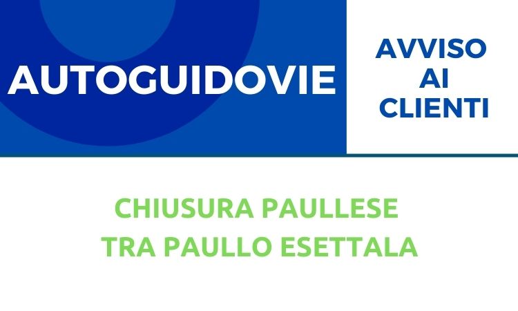 Causa lavori su EX S.S 415 PAULLESE DA MARTEDI’ 30 MARZO A VENERDI’ 2 APRILE 2021 PER 3 NOTTI LIMITATAMENTE ALLA FASCIA ORARIA 20:00 - 06:00 LE CORSE IN ENTRAMBE LE DIREZIONI ACCEDERANNO A PAULLO DAL SEMAFORO DI CONTERICO PER POI RIPRENDERE IL NORMALE PERCORSO DA ROTAORIA DELLA CERCA FERMATE SOPPRESSE: