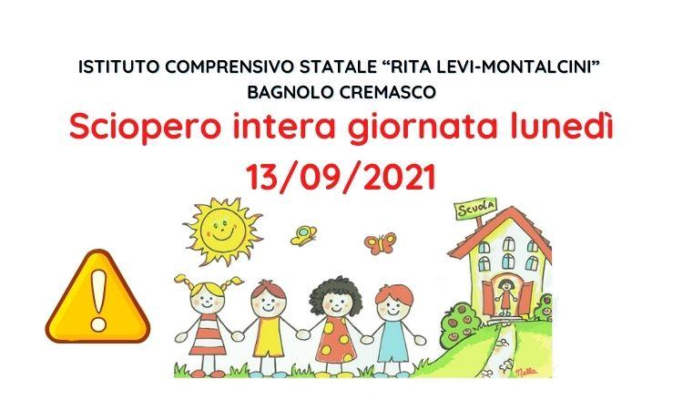 Si comunica che, causa sciopero intera giornata lunedì 13/09/2021, indetto dalle organizzazioni sindacali ANIEF e SISA, alla scuola dell'infanzia, la sezione dei verdi termina le lezioni alle ore 13.00.