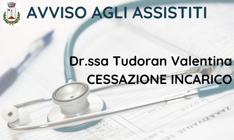 La Dr.ssa Tudoran Valentina (sostituta del Dr Petruzzellis Giuseppe) cesserà l'incarico di Medico di Medicina Generale nei comuni di Monte Cremasco e Vaiano Cremasco in data 31.03.2021