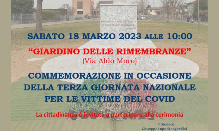 L’Amministrazione Comunale commemorerà la terza "Giornata nazionale in memoria di tutte le vittime dell'epidemia da coronavirus" istituita dal Parlamento Italiano e prevista per il 18 marzo, data in cui nel 2020 l'Italia assistette alla drammatica carovana dei mezzi militari che trasportavano le bare lontano dalla città di Bergamo.