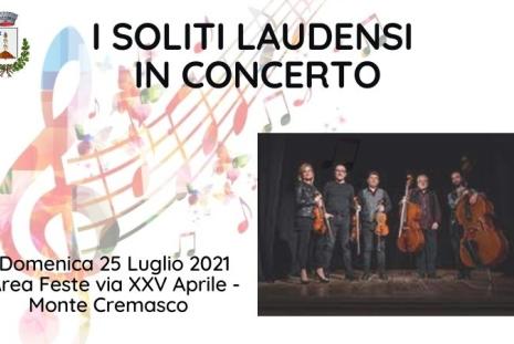 Domenica 25 Luglio 2021 alle ore 21.00 presso l'Area Feste in via XXV Aprile a Monte Cremasco si terrà l'evento I SOLITI LAUDENSI IN CONCERTO