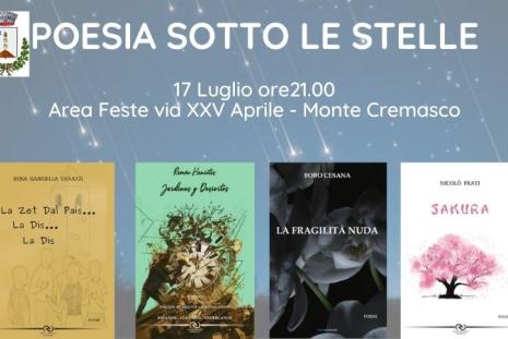 Sabato 17 Luglio 2021 alle ore 21.00 presso l'Area Feste in via XXV Aprile a Monte Cremasco si terrà l'evento POESIA SOTTO LE STELLE - Letture poetiche